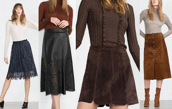 Faldas de estilo midi que molan mucho viéndolas en editoriales y en blogs pero que luego, estamos en las mismas...para combinarlas un día deprisa, que llegas tarde al curro...uuuufff...dificil lo vemos.