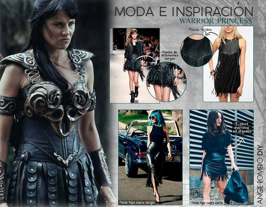 Como viste en el video hablo de Xena la princesa guerrera que es el personaje principal de una serie de televisión, también de Nancy Downs la antagonista de la película The Craft y la infaltable Morticia Addams. De cada una de ellas les he mostrado ropa y accesorios actuales que he sacado de Pinterest (mi usuario es angieromerodiy por si quieres conocer mis tableros) y pensando en que de pronto les interesa ver las fotos con más detalle las dejare en este post más abajo.