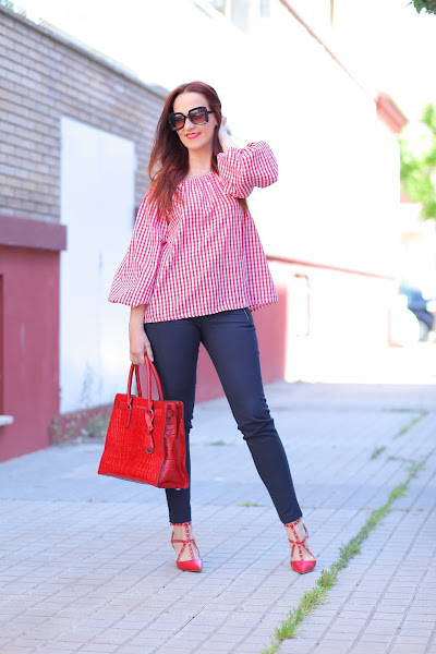 Empiezo la semana con el outfit que me puse hace unos días para salir a pasear con mi chico y acabar tomando algo en un terraza. Llevo un top con escote Bardot y cuadros vichy, pitillos negros y mocasines. Le añadí un toque de color rojo en los pendientes y el bolso. Mil gracias por vuestras visitas, que disfrutéis con las fotos Blusa/Blouse: Zaful . Pantalones/Pants: Zara. Anillo/Ring:Soufeel ...