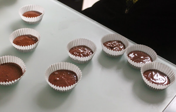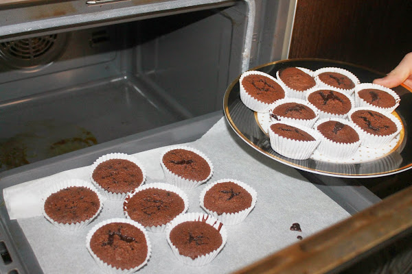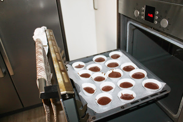 Cuando acabemos de batirlo vamos a llenar los moldes hasta la mitad, y después los meteremos en el horno durante 20 minutos aproximadamente a 160º