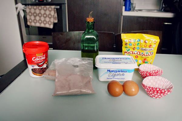 Yo no me quería complicar mucho, así que compré esta caja en la que vienen dos bolsitas con preparado de cupcake. Lo único que hay que hacer es mezclar el preparado con: 4 cucharadas de agua, 2 cucharadas de aceite vegetal y 2 huevos