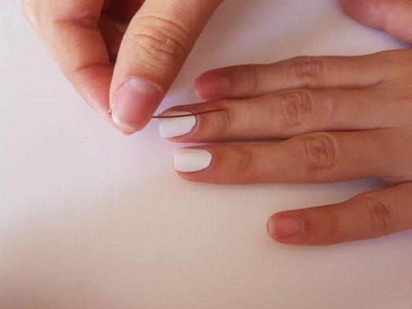 Para lograr un acabado perfecto en un trabajo con cintillas, lo primero es esmaltar la uñas con el color seleccionado y esperar a que este esté seco completamente.