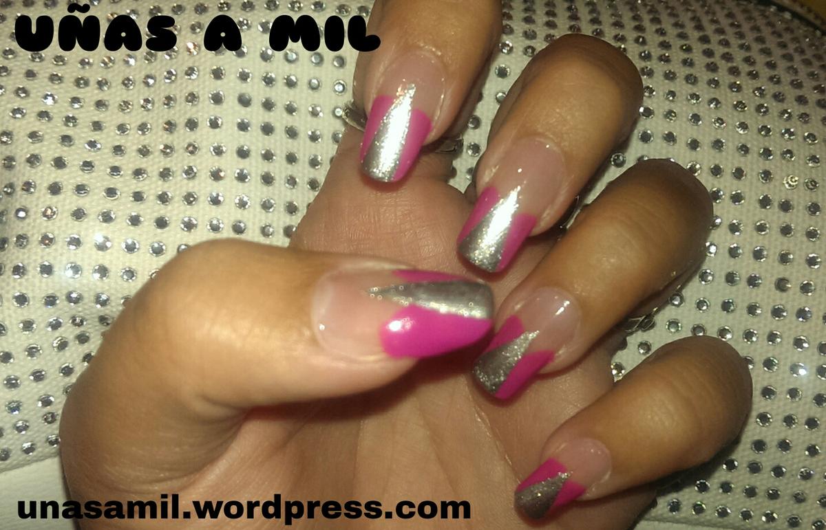 Yo he decidido combinar un esmalte fucsia con otro plateado, y queda fenomenal, ya veréis… ;-)