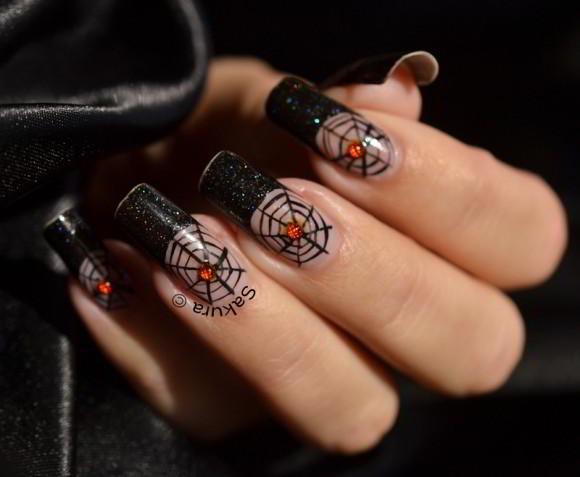 DECORACIÓN DE UÑAS CON ARAÑAS Y MURCIÉLAGOS PARA HALLOWEEN: