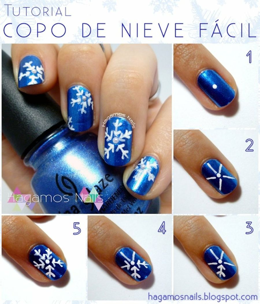 Para las que se estén iniciando en el mundo del nail art, Hagamos Nails nos enseña una manera realmente sencilla de hacer una manicura de copos de nieve para aquellas que pasan la Navidad bajo el amparo del invierno. Comenzaremos aplicando una base azul para hacer un punto en el centro e ir pintando varias líneas. Por último, sólo tendremos que añadir los detalles, pudiendo introducir una perla en el centro para darle relieve.