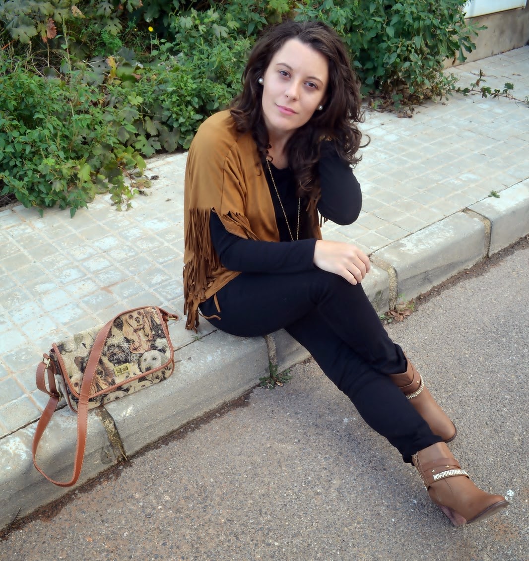 Holaa!!Vamos con el último look de la semana!Hoy una mezcla de boho, gracias a este bolso de flecos, con un poco de estilo étnico gracias a esta chaqueta.Ambas cosas son de CHOLLOMODA, es una web que he conocido hace poco, y os la recomiendo totalmente, ya que tiene unos precios geniales, a todas nos gusta estar a la última y además si lo hacemos gastando poco, pues mejor que mejor ¿no?El bolso lo ...