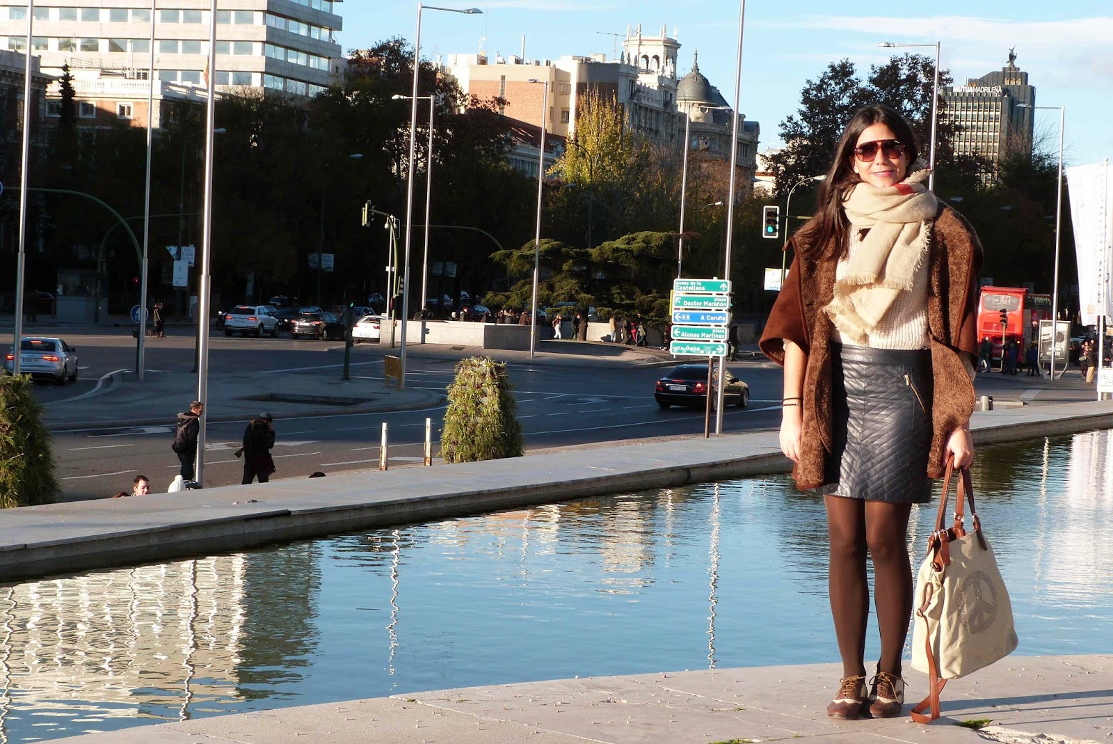 El domingo pasado hicimos una ruta por los mercadillos navideños de Madrid y al pasar por la plaza de Colón aprovechamos para hacer unas fotos con la luz del atardecer. Para pasar el día elegí un look en azul y marrón bien abrigadito. Esta falda de Esprit me chifla, es una falda de piel acolchada con dos cremalleras ideal. La combiné con un jersey en color beige y unos oxford bicolor muy originale ...