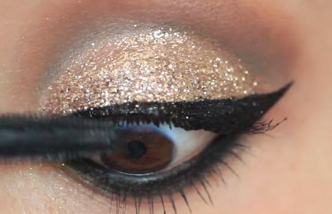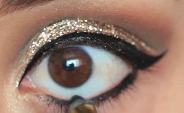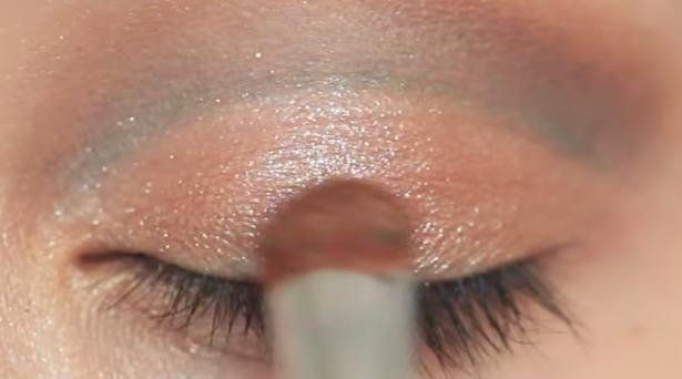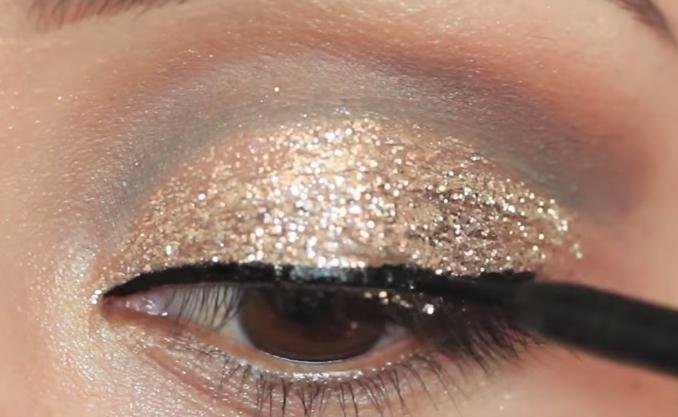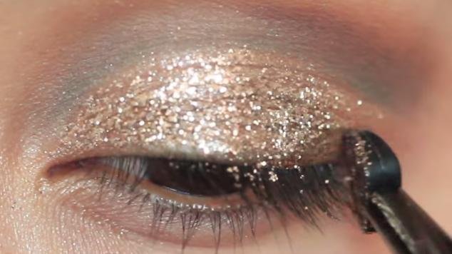 6. Moja un poquito la brocha y aplica glitter en el párpado móvil, sin difuminar.