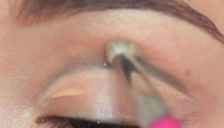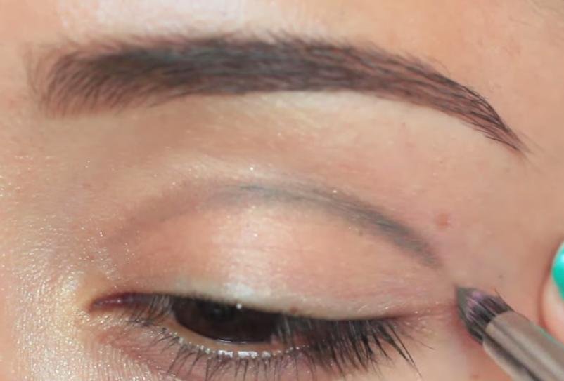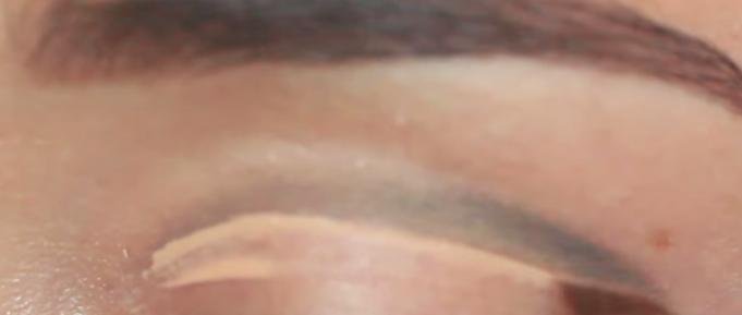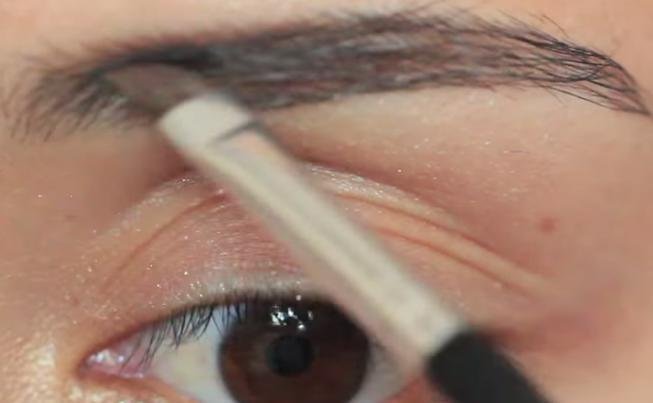 5. Por encima de la línea anterior, marca el arco de la ceja con una sombra en polvo de color café. Difumina bien para que las dos sombras se fusionen.