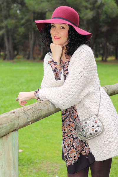 Vuelta al lunes, no se a vosotros pero a mi los fines de semana se me pasan volando. Pero bueno es lo que toca así que no me lío más y os dejo con el look de hoy. Llevo un outfit en el que el claro protagonista es el color del año, el Marsala. He combinado un jersey de punto que me resulta ideal para no pasar frío, ya sabéis que soy muy friolera, y falda de flores para romper el total look granate ...