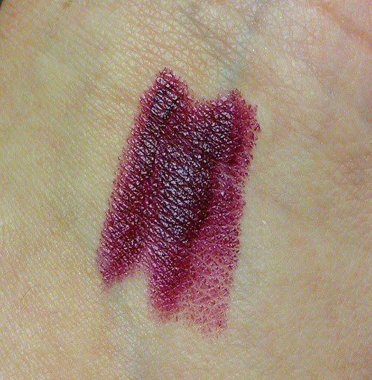 Es muy cremoso y fácil de aplicar. Su pigmentación es impresionantemente buena, y su duración también. Lo adoro! Tiene un tono rojo frambuesa divino.