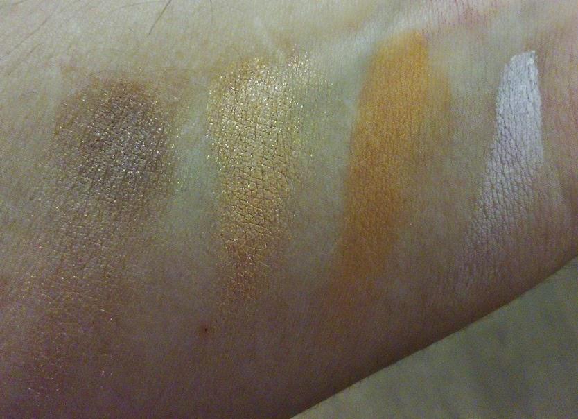Me enamoré de la paleta de sombras. Tiene unos colores preciosos y pigmenta muy bien. Al lado los polvos compactos y pigmentos irisados para aplicar en los ojos.