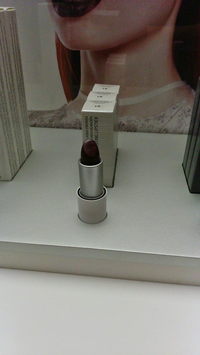 Precioso ¿verdad? Si no fuera porque no tengo los labios de Angelina Jolie, me lo hubiera llevado a casa porque este tipo de tonos van a estar muy de tendencia este Otoño-Invierno según nos dijeron.