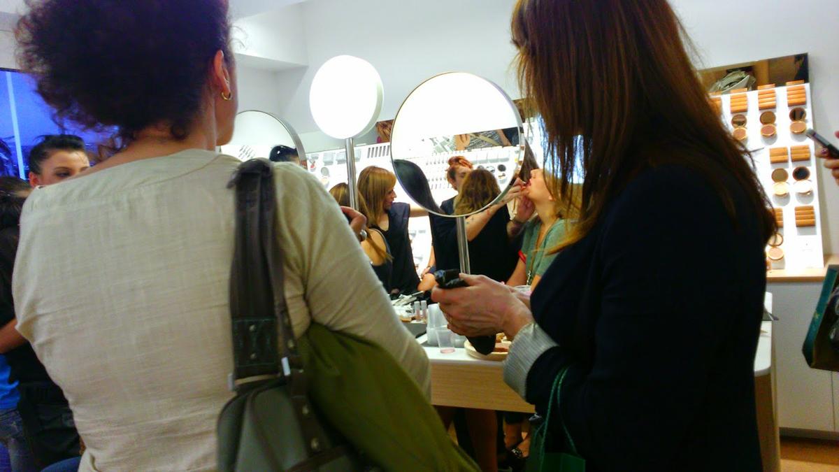 Y ahora....la fiesta! Cómo podéis comprobar, estaba lleno. Bloguers de belleza invitadas y clientas espontáneas disfrutamos de un par de horas fantásticas en las que nos maquillaron, vimos y probamos los productos, comimos, tomamos vino y hasta disfrutamos de sorteos. Por desgracia me tuve que ir antes de que acabara la fiesta porque tenía que ir a buscar al niño y se me hacía tarde, así que no se si me tocó algo al final, aunque supongo que no tuve esa suerte. Otra vez será!