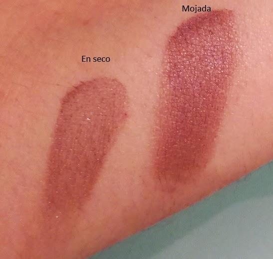 Tiene un color tierra precioso que puesto en seco deja ver unos leves brillitos muy favorecedores y nada exagerados, pero aplicada en mojado se vuelve metalizada. A continuación lo veréis mejor.