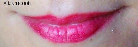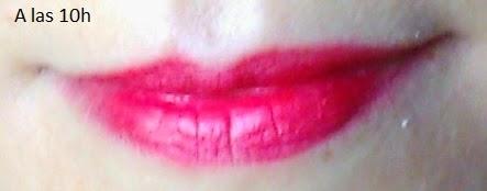 Aunque había perdido intensidad, el color seguía allí. Es el primer labial que me dura tantas horas en buenas condiciones y sin tener que retocar. Eso sí, si besáis a vuestro chico lo mancharéis de carmín.