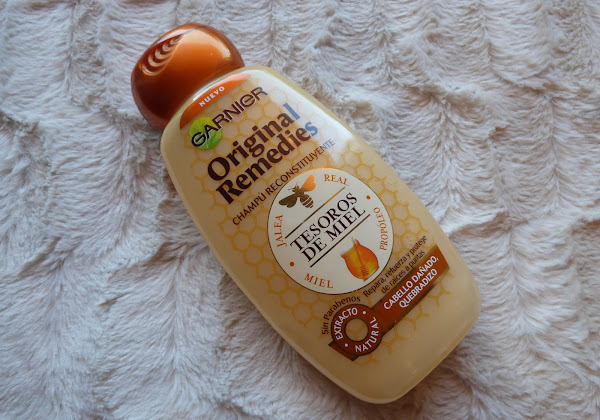 CABELLO: Garnier Original Remedies, Tesoros de miel. Durante el verano el pelo sufre muchísimo, entre el calor, las playas y piscinas, las gomas para recogerlo y demás, siempre acabamos el verano con el cabello muy resentido. Desde el primer momento me encantó éste champú, es súper hidratante y deja el pelo muy suave. A demás, el olor es delicioso.