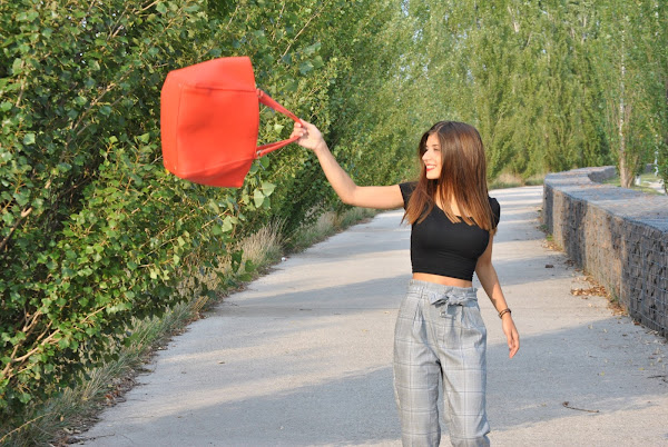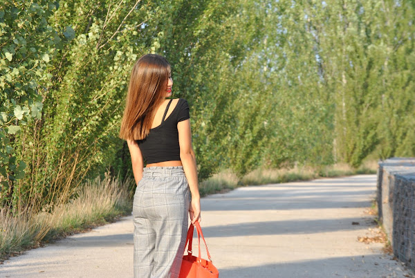 Para el look, he combinado unos pantalones chinos de talle alto con un crop top negro. El pantalón tiene un cinturón al que le he hecho un pequeño lazo. Tengo que decir que nunca he sido de éste tipo de pantalón, desde que me pasé a los pitillo prácticamente no ha pasado otro tipo de pantalón por mi armario, pero cuando lo vi en la percha fue amor a primera vista. A demás lo compré en rebajas por solo 599€, ¡con lo cuál no me pude resistir!