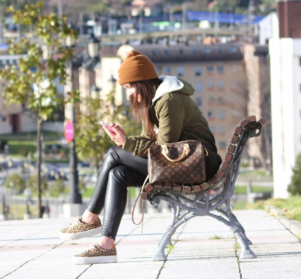 Para combinarlos, nuevamente mis inseparables leggings, esta blusa a la que ya había hechado el ojo, porque combina a la perfección con el speedy, y que de casualidad encontré super rebajada, una parkalarga de Sammy Dress , tengo ya una cortita pero una nueva más amplía nunca viene mal. El collar de Born Pretty que casa perfectamente con el estampado de la blusa y para terminar mí nuevo gorro de Carhartt, que grandes recuerdos me trae esta marca...