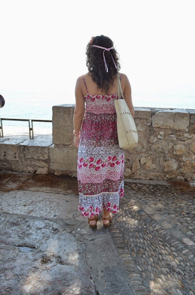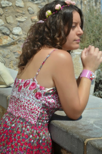Vestido: Tienda local Peñiscola / Sandalias: Carlos Reula / Bolso: Old / Corona de flores: Tienda local Vall d"uixó / Pulsera: Trendy Accessories