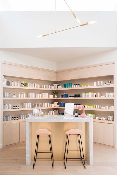 Hoy quiero enseñarte esta boutique de cosméticos y a la vez una clínica un espacio acogedor donde la calidez y el diseño hacen que este lugar no sea una típica clínica.