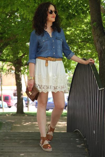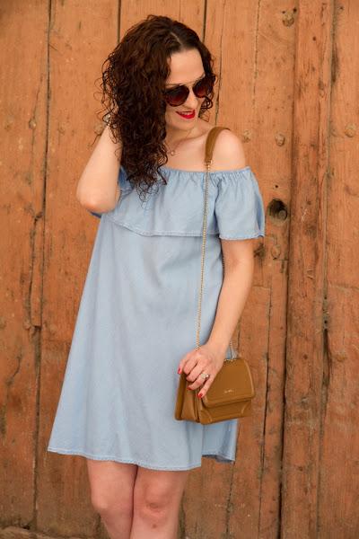 Ya os he dicho alguna vez que me gusta mucho la tendencia de enseñar los hombros. Es tan femenina y sienta tan bien que esta temporada me he hecho con un montón de prendas. Este vestido off the shoulder tejano es uno de ellos, me ganó por el color y el denim tan blandito que tiene. Me lo puse con un bolso camel y sandalias nude que siempre hacen muy buen combo con el tejano. Para las joyas me deca ...