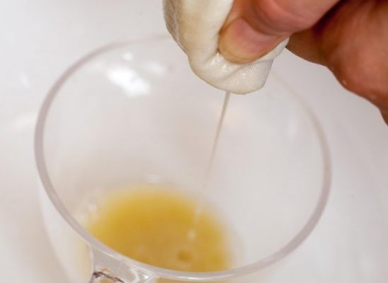 Ya tenemos el zumo de jengibre, exprimimos el limón, mezclamos y guardamos en un recipiente de gotero o recipiente de cristal.
