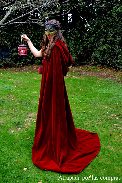Por un lado Yanire de la firma SIN PAR que aportó una impresionante capa de terciopelo en color rojo/burdeos. Y por otro, Laura de AYALGAS que en cuanto le comenté la idea apareció con una caja llena de diademas y una sorpresa, una máscara espectacular que nos dio un juego increíble para las fotos. Os dejo los enlaces directos de cada una de ellas para que echéis un vistazo a lo que hacen porque son verdaderas artistas.