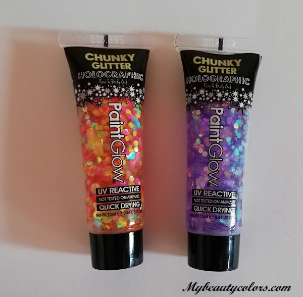 6-CHUNKY GLITTER DE TUBO de PAINT GLOW: Glitter más Fijador en un solo tubo. Son ideales para dar un toque divertido y creativo a nuestros maquillajes. Se pueden aplicar en los ojos, mejillas y labios sin problema. Yo tengo estos dos que tengo que poner en uso, a ver que tal quedan.
