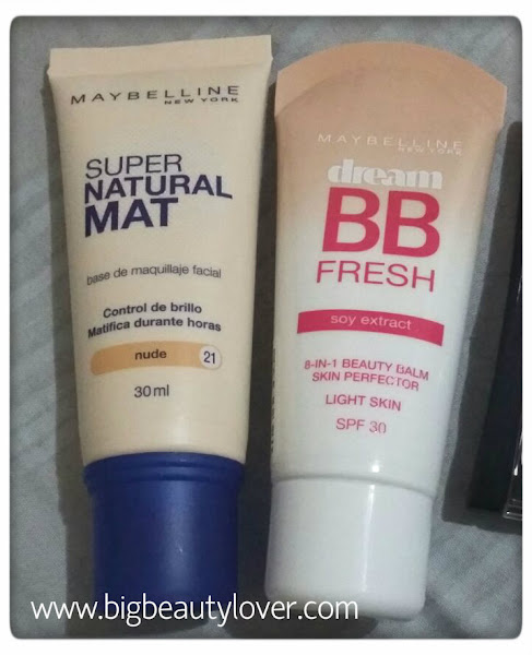 Estos productos fueron la Dream BB Fresh en tono "light skin" que ya conocía y me encanta (para mi es ideal para época de calor ), y también quería una base ligera y matificante así que elegí la Super Natural Mat en el tono "nude" (de esta elegí el tono siguiente al mio porque seguro algo de color agarro y si no me iba a quedar clara porque esta si tiene cobertura). Las 2 tienen 30 ml y con estas estoy hecha para esta primavera-verano .