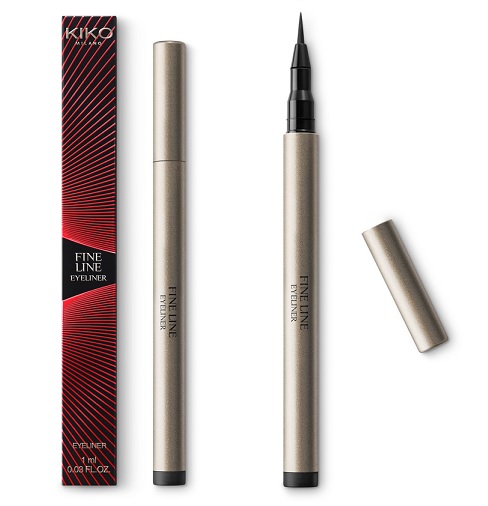 FINE LINE EYELINER: Delineador de ojos negro con punta precisa. Su textura fluida se adhiere perfectamente a los párpados y garantiza un maquillaje impecable y de larga duración. Su punta de pelo flexible se adapta al contorno externo del ojo con un trazo nítido, elegante y preciso. Es fácil de aplicar y permite hacer líneas finas y medias. Está disponible en color negro y su precio es de 7 euros.