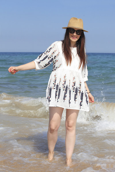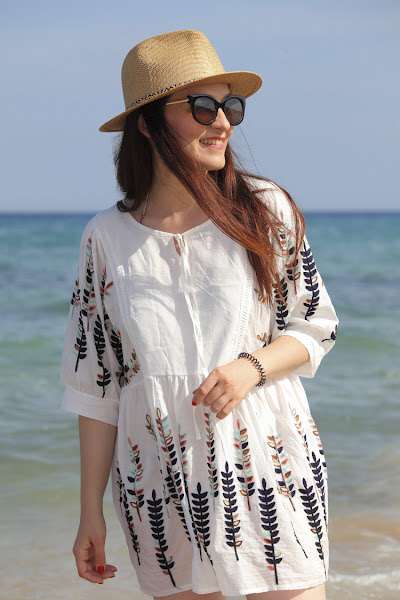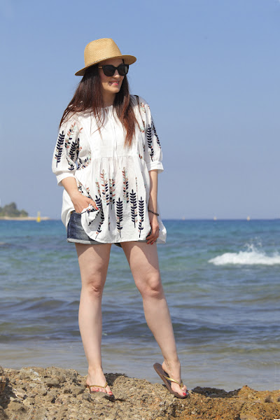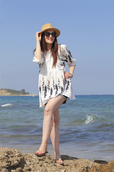 Ese día estrenaba mi nuevo blusón de aire boho que es ideal para un día playero, al que le combiné unos short tejanos y sombrero, mi aliado perfecto para que no me de el sol en la cara. Así que, como todavía no os había enseñado el blusón, la cala nos parecía muy bonita y como se puede ver en mi cara lo estábamos pasando genial, decimos hacer estas fotos para poder enseñaros el outfit que llevé.
