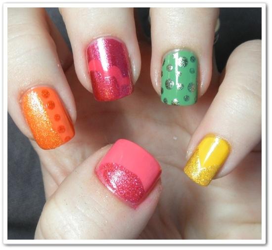 Fiestas de verano para usted : Cuando el verano está a la vuelta de la esquina, la gente desempolva su equipo de cocina al aire libre e invita a otros a una fiesta. Esto podría ser una parte de su arte de la uña con el tema de la fiesta fresca y casual. Lo que significa mucho brillo y color pero en tonos más claros y brillantes en sus uñas? Entonces hará juego con el colorido atuendo playero que usted usará.