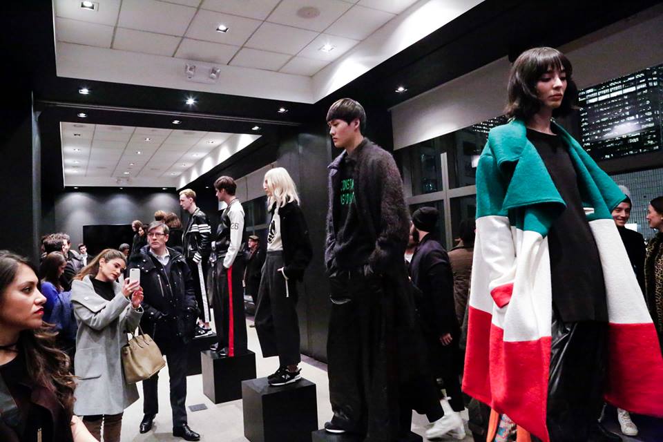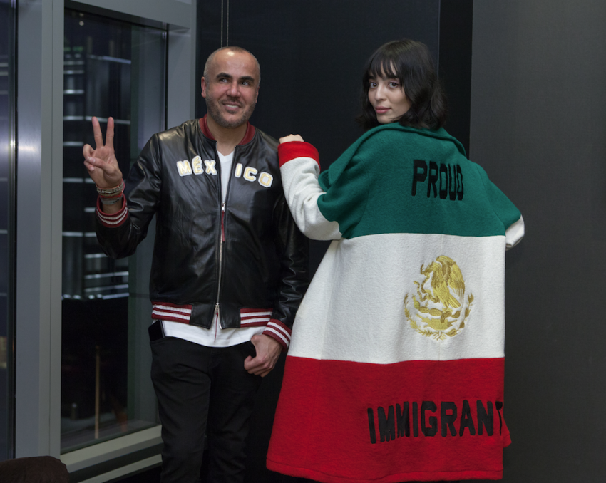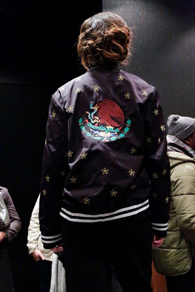 La pieza estelar de la colección es un abrigo largo que en pocas palabras en nuestra bandera hecha prenda. Este abrigo tiene las palabras Proud Immigrant bordadas en las franjas verde y roja.
