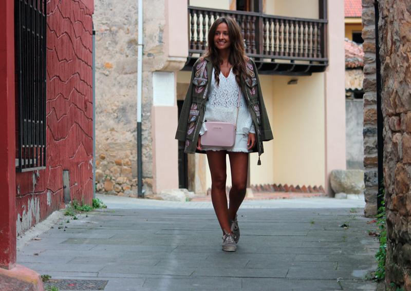 Para la ocasión no dude en elegir un estilismo cómodo, veraniego pero sin olvidar la chaqueta porque en la montaña hace más fresco… y este fue el resultado. La blusa de encaje con enormes mangas de campana fue un fichaje nuevo que tenía muchísimas ganas de enseñar por aquí, una vez más la adquirí en mí web favorita, Rowme, que sí aún no la conocéis ya estáis tardando, la mini blanca también es de la misma página y como bien sabéis es un básico imprescindible en cualquier armario y mucho más esta temporada que las faldas vaqueras son tendencia total.
