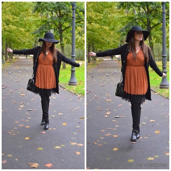 El vestido del look de hoy fue verlo y recordar la colección cargada de pájaros que sacó Miu Miu para la primavera/verano del 2010. Este vestido de pájaros lo encontré en La Lola Gijón y me gustó muchísimo, no sólo por el estampado, sino por el aire romántico que tiene, por la combinación del negro con camel que me encanta y me resulta muy elegante y porque el largo, que igual no se puede apreciar ...