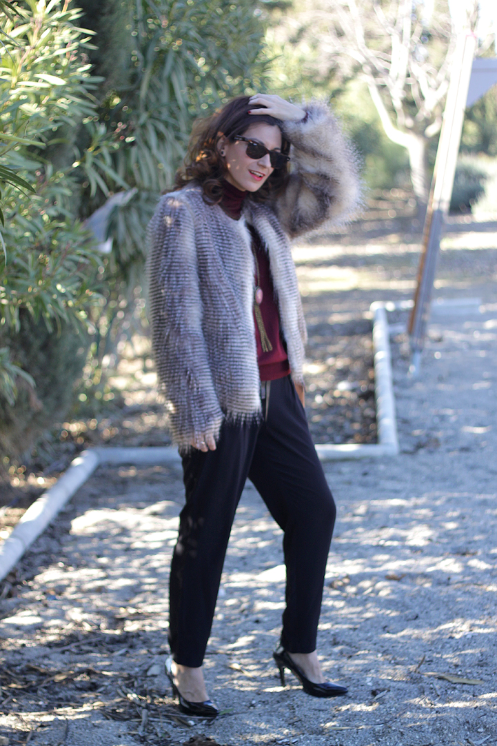 Coat: Unreal Fur (old) / Sweater: Kookai (old) / Pants: Zara (old) / Bag: PG / Heels: Friis & Company / Necklace: Mango (old)