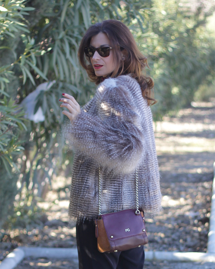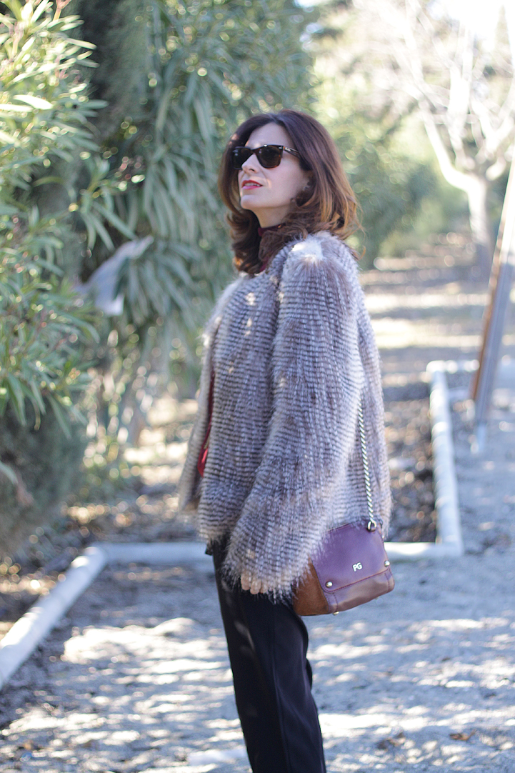 Today I wear a look with one of my favorite faux fur coats. As the coat itself is striking, I decided to go for basic and wear turtleneck in burgundy and black dress pants. Would not say that less is more? Again I carry my PG bag and black heels. Thank you very much for all your comments!