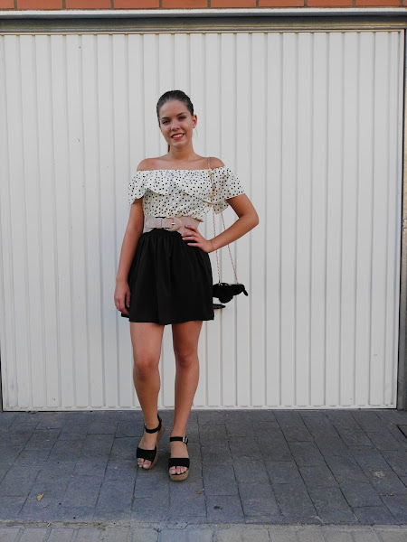 Es un look muy básico en los dos colores más clásicos, el blanco y el negro. Lo que le da el toque al look es el bolso de gato, le da un toque divertido y le quita la seriedad al look.
