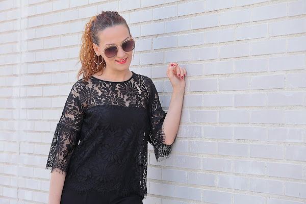 Hace unos días, os comenté que para mi una de las cosas preferidas de las navidades eran las comidas y cenas rodeada de la gente a la que quiero. Además, estos días me gustan especialmente porque nos arreglamos más, algo con lo que disfruto mucho mientras preparo mis looks, por eso he pensado que os gustaría ver una de mis propuestas. Un sencillo pero muy elegante total look negro, en el que combino un top de encaje con pantalones culotte y complementos en dorado.