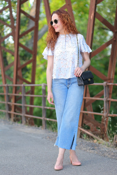 Una cosa que me chifla del verano es poder cenar en una terraza tranquilamente. Por eso cuando llega el fin de semana, si no tenemos plan con los amigos o la familia, siempre nos vamos de cenita con mi marido. Además, nos gusta ir cambiando de restaurantes para descubrir diferentes lugares y cocinas. Aprovechando que la semana pasada en un pueblo cercano celebraban la fiesta de la Ternera, optamos por cenar allí y este es el look que elegí. Un top flojito con estampado de flores, mis jeans preferidos de este verano y en los pies mis nuevas Ursulitas rosas, que no pueden ser más bonitas y cómodas.