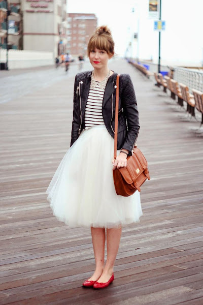 Veamos algunos looks para inspirarnos...La clave está en contrarrestar el momento romántico y dulzón, algo princesil, de la falda de tul,con un toque rockero más desenfadado...Pasen y vean: