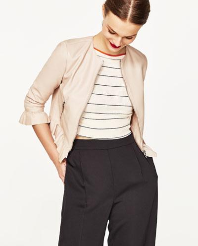 CAZADORA EFECTO PIEL VOLANTES 19.99 Eur zara