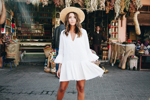 «Bordado con estrellas y con adornos de pompón, adornado en el escote, mangas y dobladillo, Lucia es una pieza delicada hecha para viajar facilmente. Usala sobre tu bikini como una cubierta o llevala con la falda Havana para un perfecto conjunto blanco.»