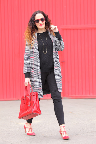 Lunes de nuevo y que me mejor que empezarlo con un outfit que me chifla. Por aquí seguimos con temperaturas frías, así que hoy os enseño el look por el que me decanté hace unos días para estrenar este abrigo de lana con print pata de gallo. Para el resto del estilismo que mejor que un total look negro con jersey de punto y pitillos y así no restarle protagonismo.