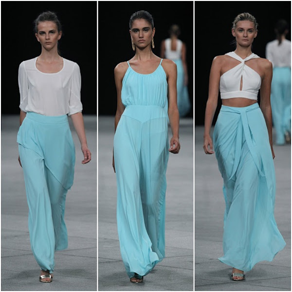 Hace unos días que comenzó MADRID FASHION SHOW SS16 y la moda asturiana tiene su representación en esta pasarela gracias a la diseñadora MÓNICA CORDERA, un desfile al que estaba invitada pero al que, por trabajo, no pude asistir. Quien fuera galardonada en la pasada edición con el Premio TRESmmé al mejor diseñador, ha vuelto a presentar con muchísimo éxito otra de sus colecciones, en este caso SUNRISE, la colección primavera/verano 2016, una colección con una amplia paleta de colores en la que no faltan los estampados flores, las rayas y un pequeño guiño a la tendencia étnica tan presente últimamente. En SUNRISE podemos encontrar vestidos, pantalones palazzo, telas fluidas y por supuesto, su característica bisutería en este caso en forma de grandes aros dorados que recuerdan los años 80. A destacar las prendas de lentejuelas en color aguamarina, los pantalones me parecen espectaculares. Desde aquí mi enhorabuena a Mónica Cordera.