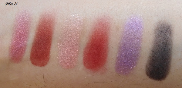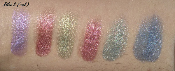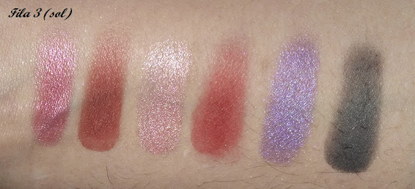 Para que os hagáis una idea de los tonos y la pigmentación que tienen las sombras, os dejo a continuación swatches de todas las sombras a la sombra y al sol. Los swatches están hechos con el dedo sobre el brazo directamente.