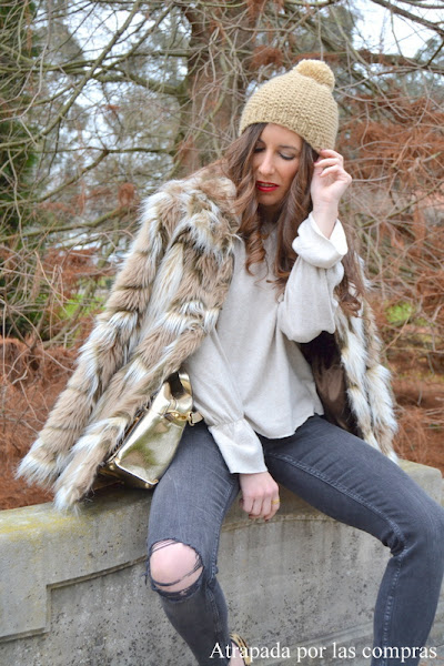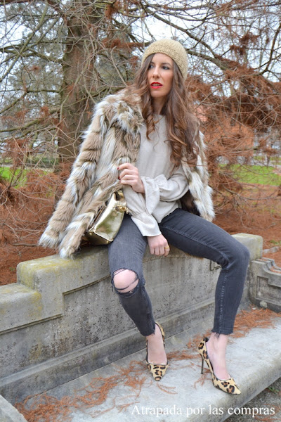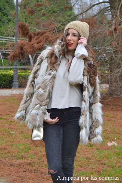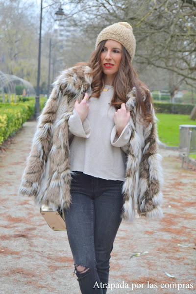 Bell sleeves o lo que es lo mismo mangas con volantes y es que llevar prendas con volantes en las mangas es lo más este invierno. Esta tendencia también ha llegado a los jerseys, prendas indispensables en estos días de tanto frío, consiguiendo reinterpretarlos y transformar una prenda básica en una prenda muy chic, diferente y original. En el look de invierno que os enseño hoy combino un jersey con volantes en las mangas en color camel con unos cropped jeans pitillo que ayudan a equilibrar la figura y compensar el volumen de la parte superior que aportan los volantes. Como prenda de abrigo un chaquetón de pelo en los mismos tonos que el jersey y los jeans y algo fundamental para protegerse del frío, el gorro de lana, este de TORMENTA encaja a la perfección con el resto de look. Aproveché para estrenar mi nuevo colgante media luna, no me puede gustar más.