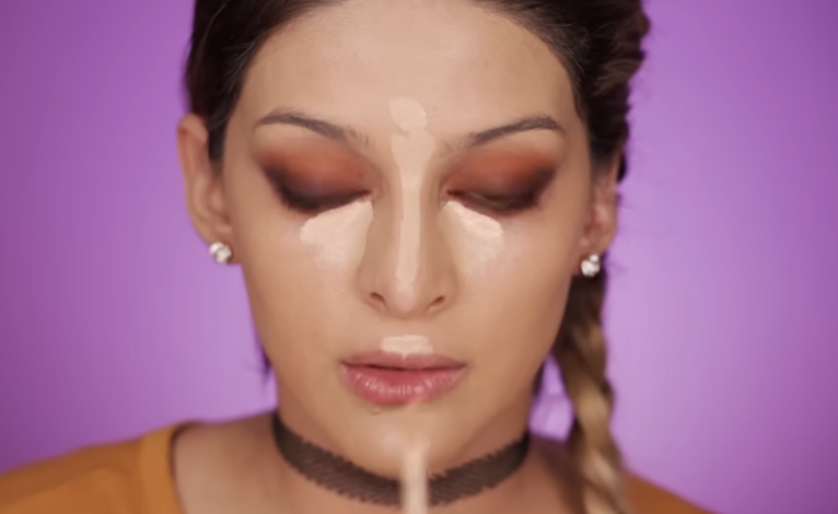 Preparamos primero los párpados con un corrector, lo que ayudará a que la sombra quede bien. Se extiende y se difumina con una esponja.Es importante que lo extiendas un poco más del borde del ojo y las cejas.
