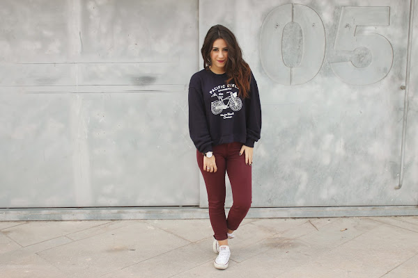 La he combinado con unos pantalones de color marsala, que sin duda es el color estrella este otoño, y una de mis tendencias favoritas.